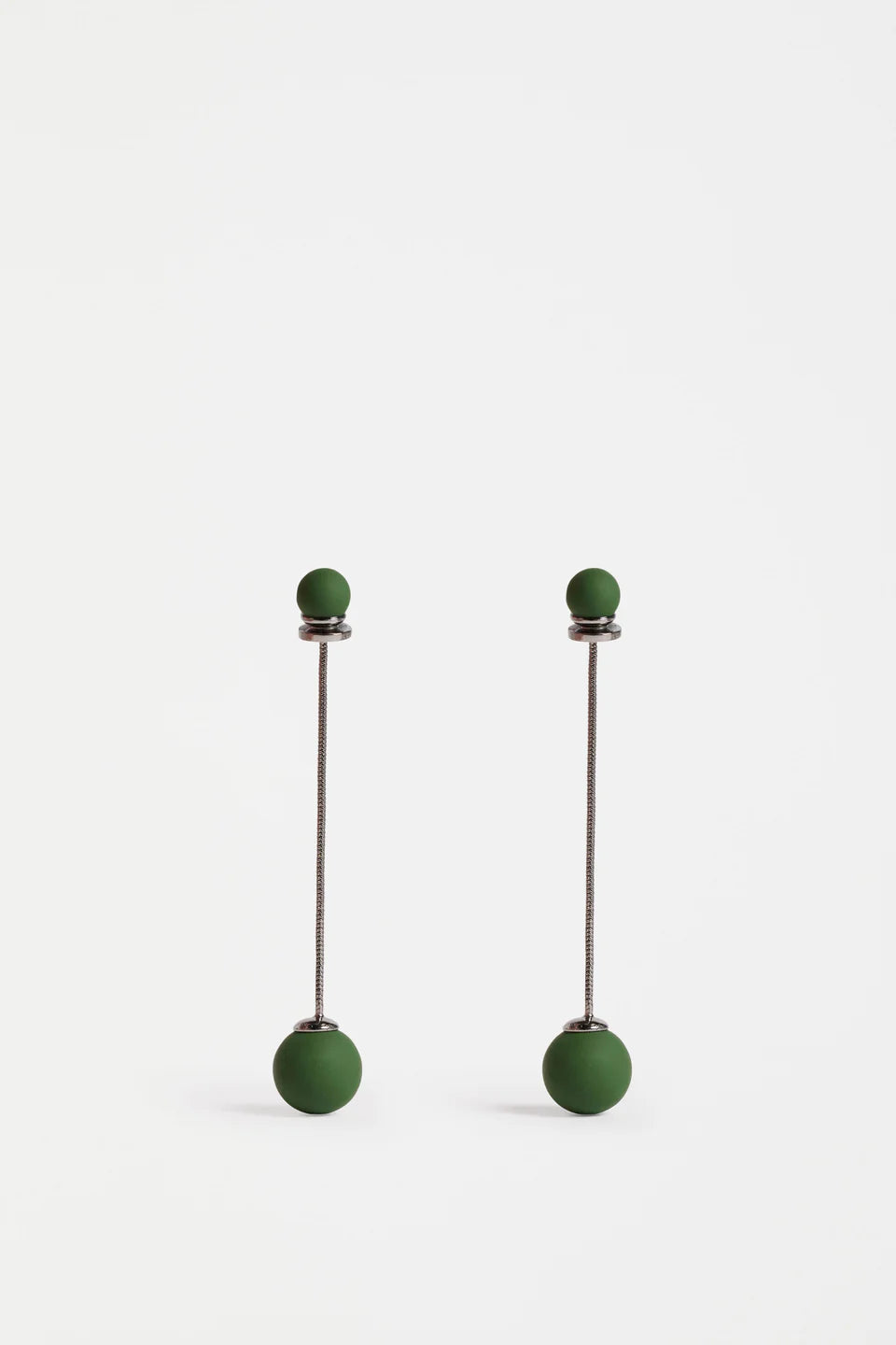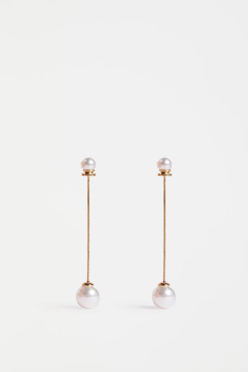 The Sarra Drop Earring are a long drop design with an elegant and sophisticated edge. These lightweight, fine earrings showcase a long chain with a small round bead at the ear, and a larger bead dangles at the other end, creating delicate movement