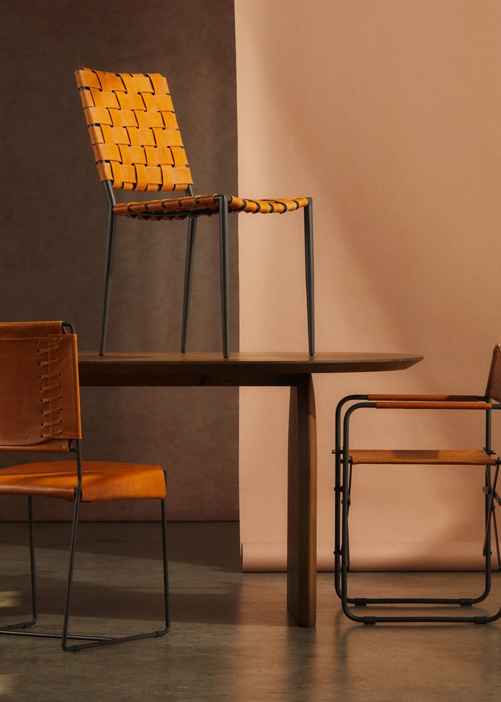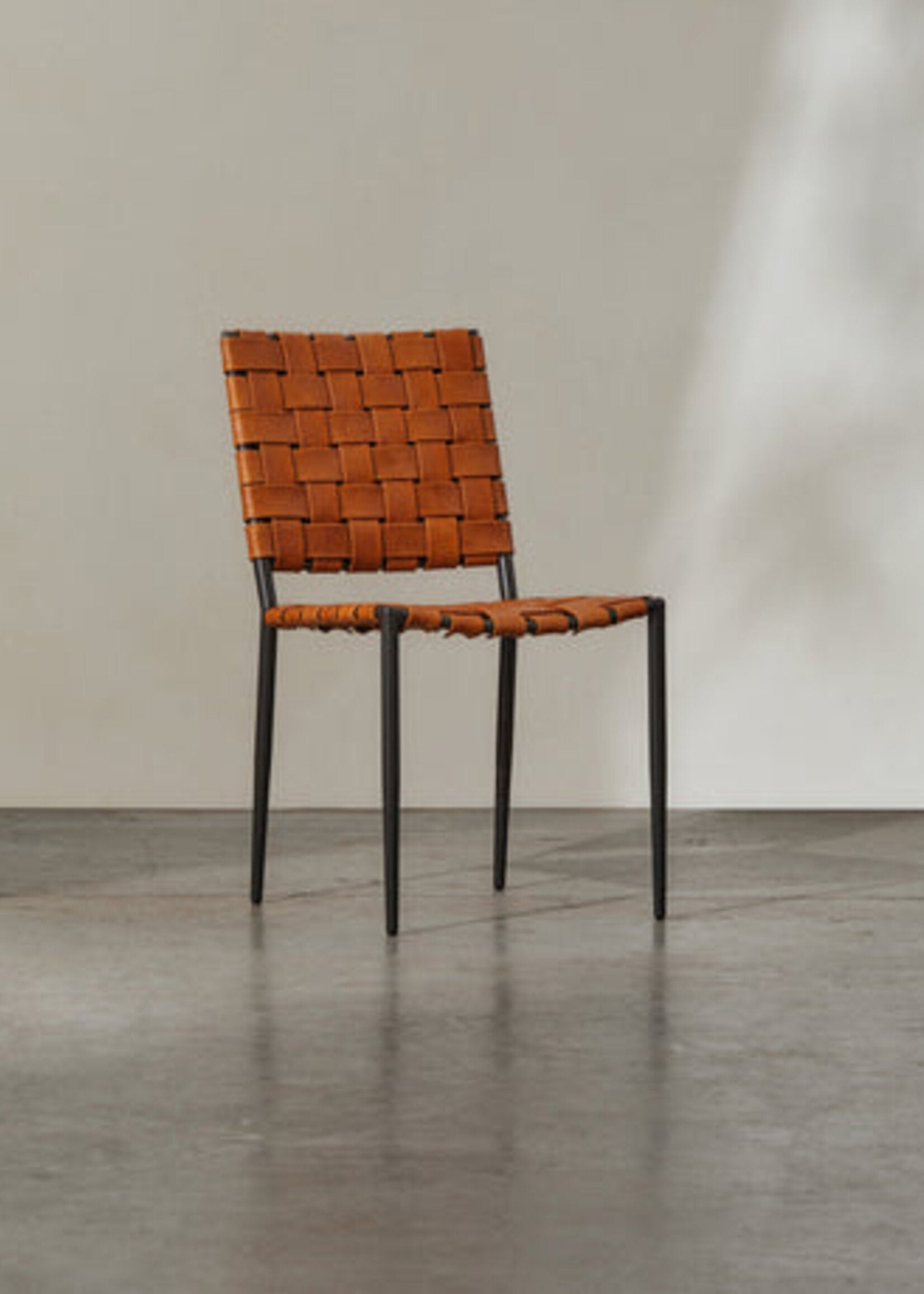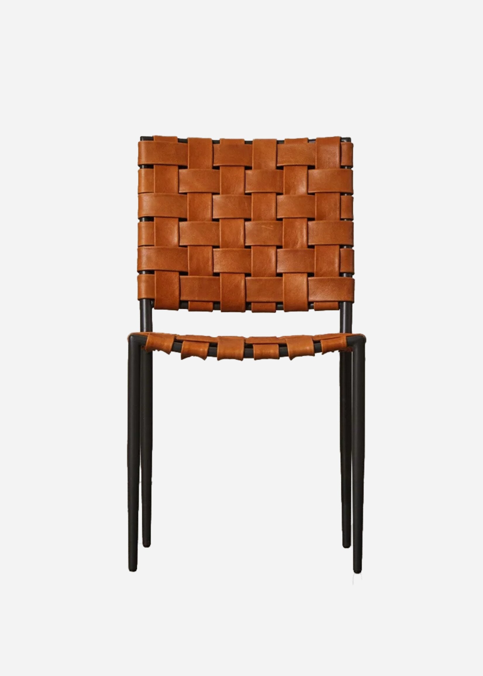 The back rest and seat are comprised of leather strappings woven into a grid-like pattern, both intriguing and supportive. Whether you're enjoying an intimate dinner or hosting a large gathering, the Batali Dining Chair will be the perfect accompaniment to create a stunning dining experience.