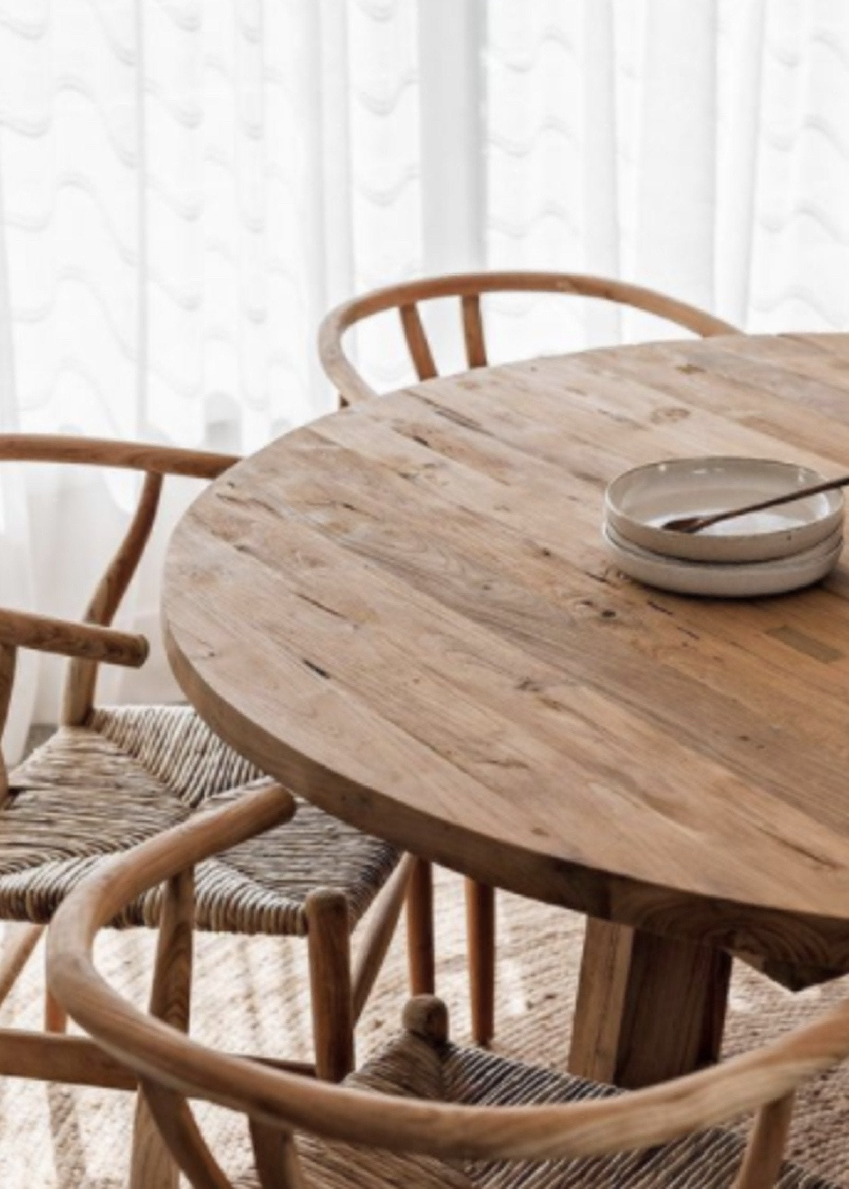 A classic round table to suit all dining spaces. Made from solid recycled teak, the Talia is hand made and features the raw aesthetic of the natural timber.