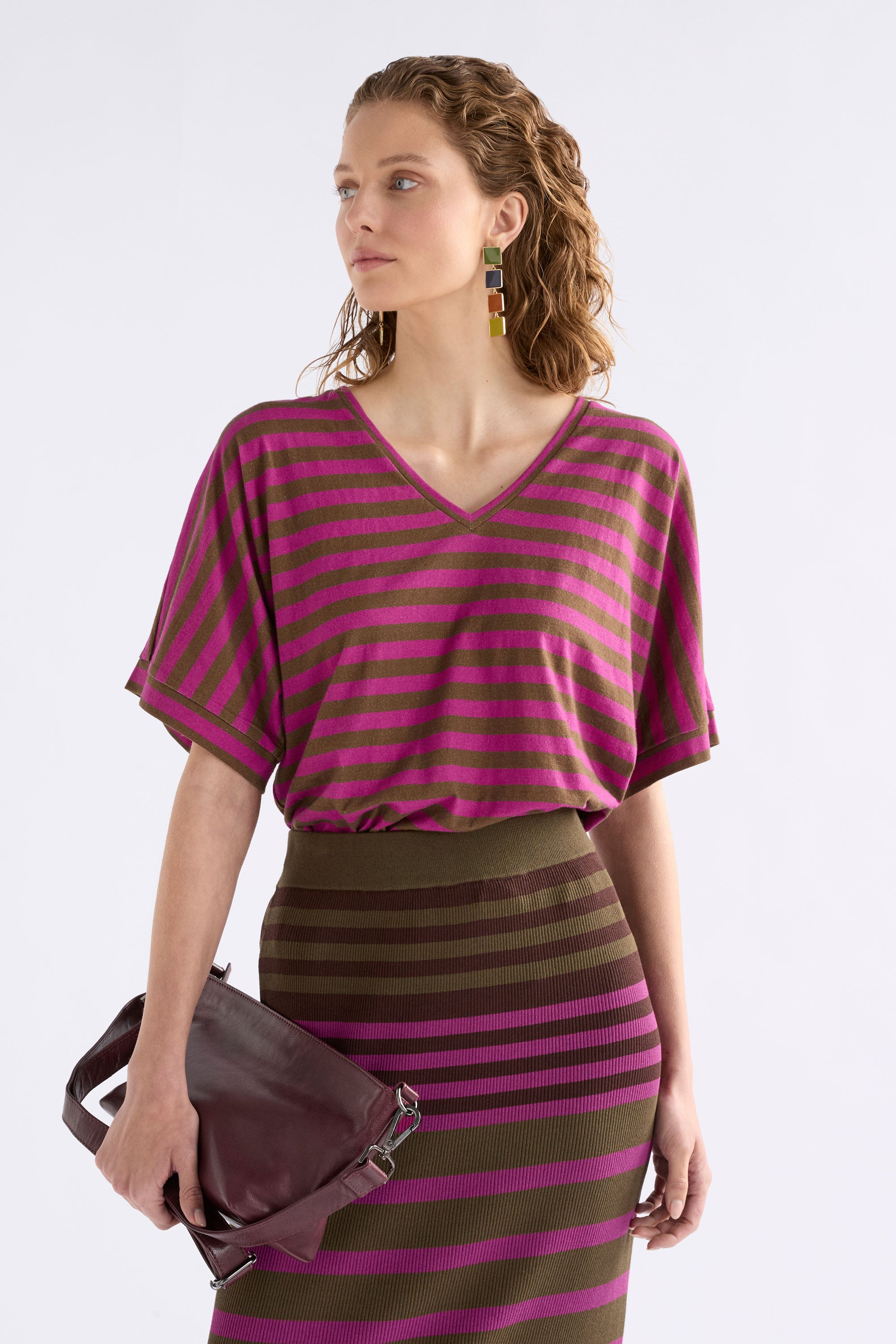 The Seter Tee is a relaxed V-neck t shirt. An ELK classic, the Seter Tee is crafted from lightweight, organic cotton. The tee is defined by its boxy cut, comfortable V-neckline, and perfectly cut batwing sleeves that finish just above the elbow. The Seter Tee is a core outfit builder that you will come back to over and over again.
