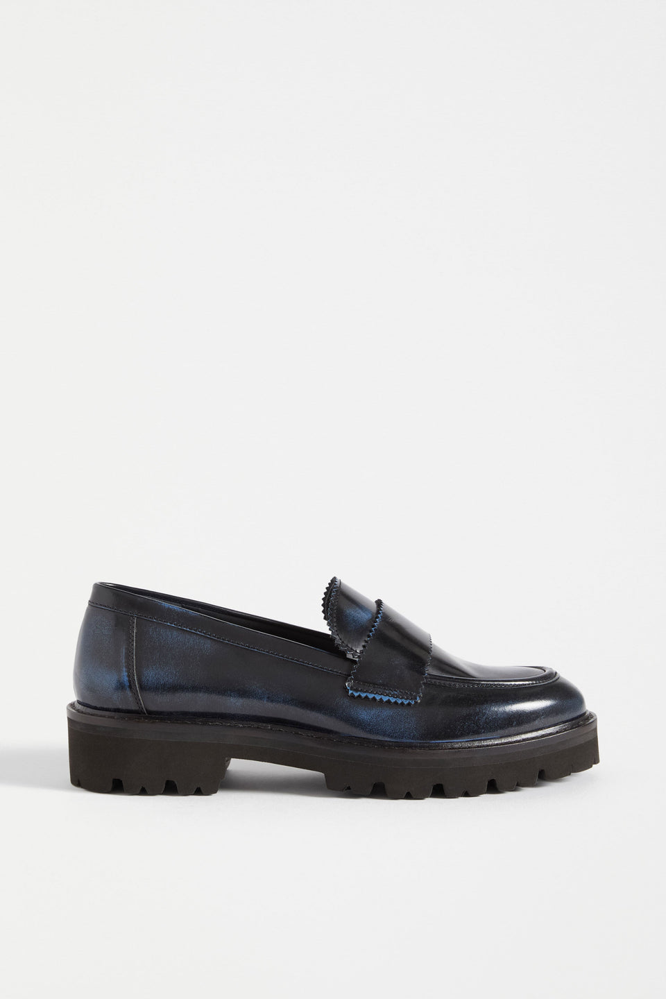 The Tirstta Platform Loafer is a modern twist on a classic, platform loafer style. Crafted from luxurious sturdy cow leather featuring a unique brush off finish technique, revealing a vibrant contrasting colour underneath while remaining neutral and easy to style. Finished with a unique zig zag edging, adding further playful design elements to these chunky but light EVA rubber soled shoes. Designed for everyday comfort, this slip-on style will be your go-to-autumn-winter footwear choice.