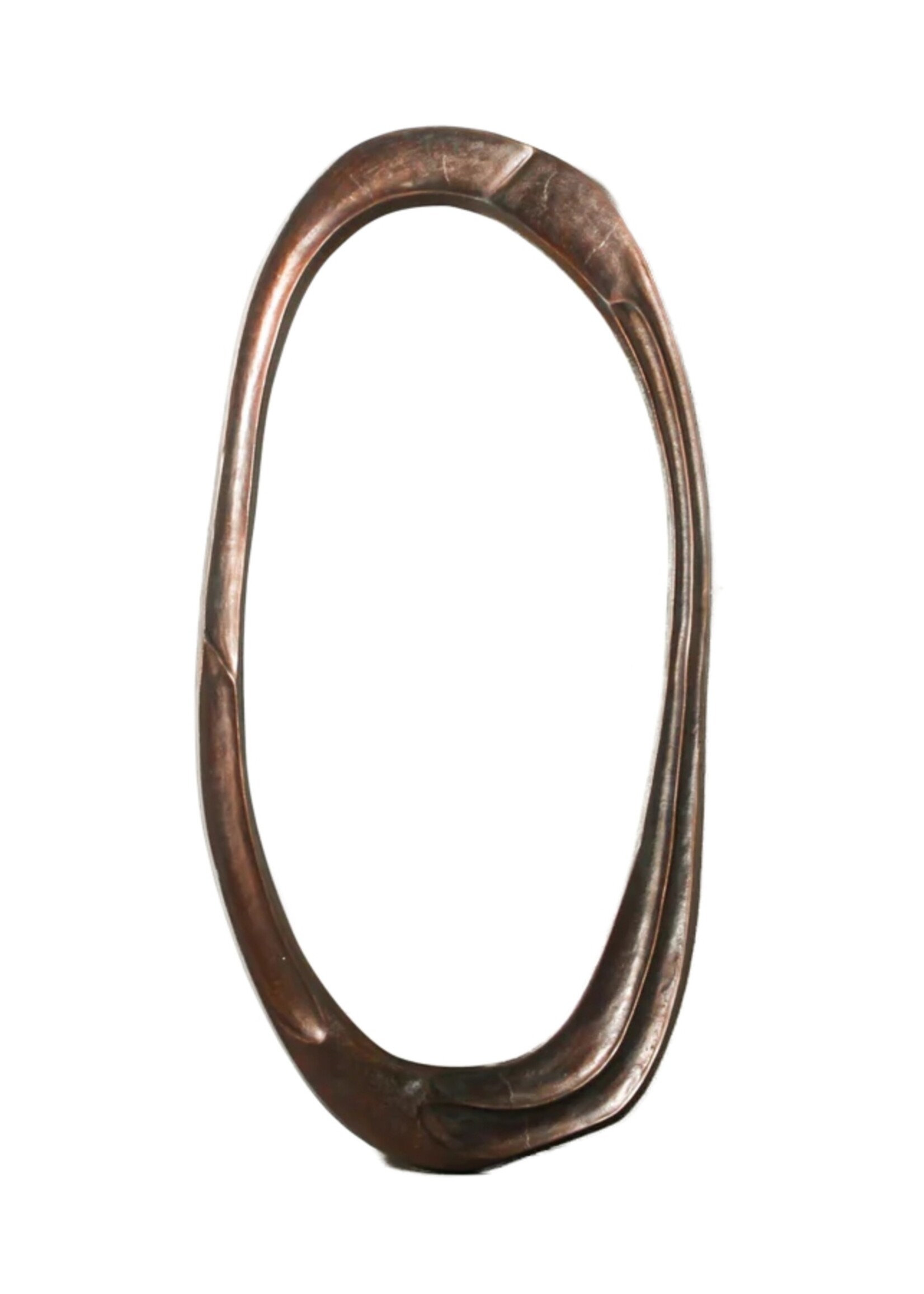 Crafted with a nod to biomorphic design, this Organic Mirror combines organic form and contemporary design. Its dark oil brass frame features fluid, wavy linear detailing that enhances the mirror's distinctive oval shape. The Organic Mirror draws inspiration from natural contours, offering a sophisticated yet approachable addition to your wall decor. It invites light and depth into your interior, creating an illusion of expanded space. It serves as a perfect focal point, whether placed above a console, in an entryway, or as part of a gallery wall, enhancing the ambiance of your home.